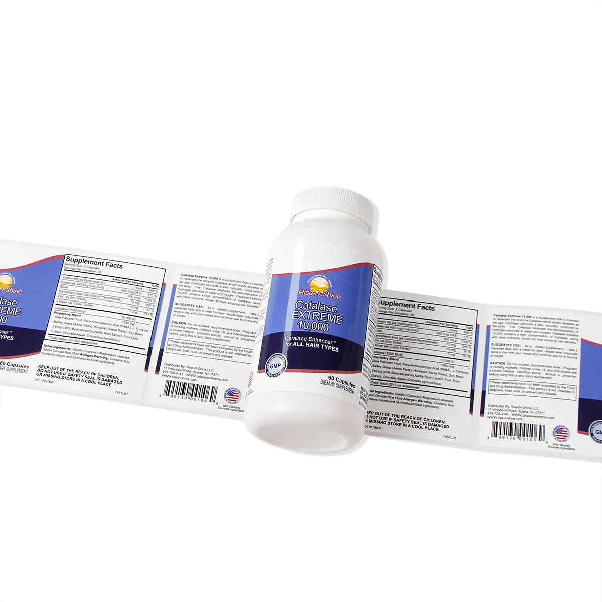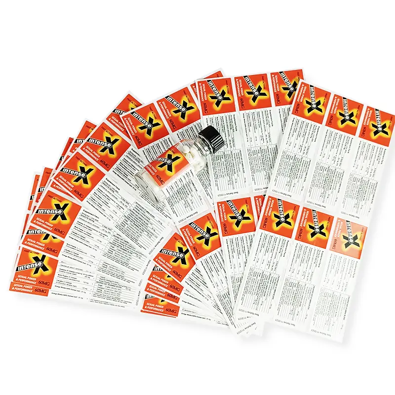 The labels of medical products include stickers for health care products, vitamin labels, medical label stickers, medical drug labels, medical bottle labels, medical drainage tube labels, and medical vacuum blood collection labels. Our company has imported equipment (new rotary printing machine, laser knife mold NC die cutting, high-precision bar code machine, etc.), Imported materials (base paper, ink, consumables), exclusive customization, as you want, a variety of sizes, your choice, three-day shipment.